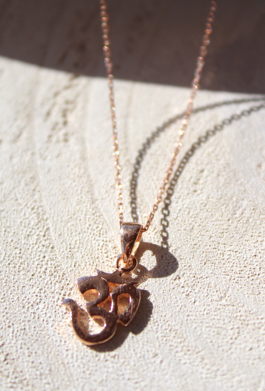 Delicado collar dorado con el símbolo OM realizado en plata de ley maciza disponible en una selección de chapa de oro.