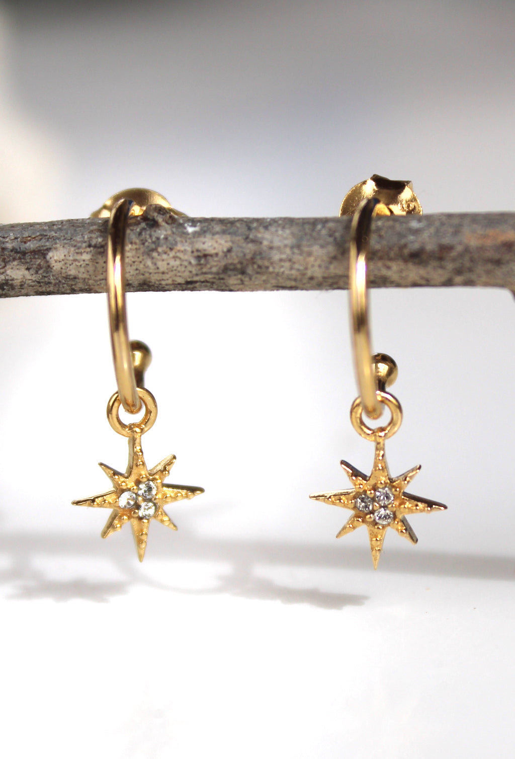 Hoop earrings with a stud back and removable crystal encrusted star charm.