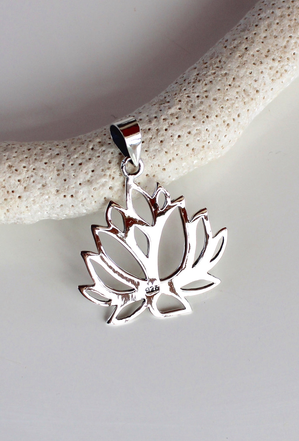 Beautifully detailed lotus flower pendant and chain in solid sterling silver.