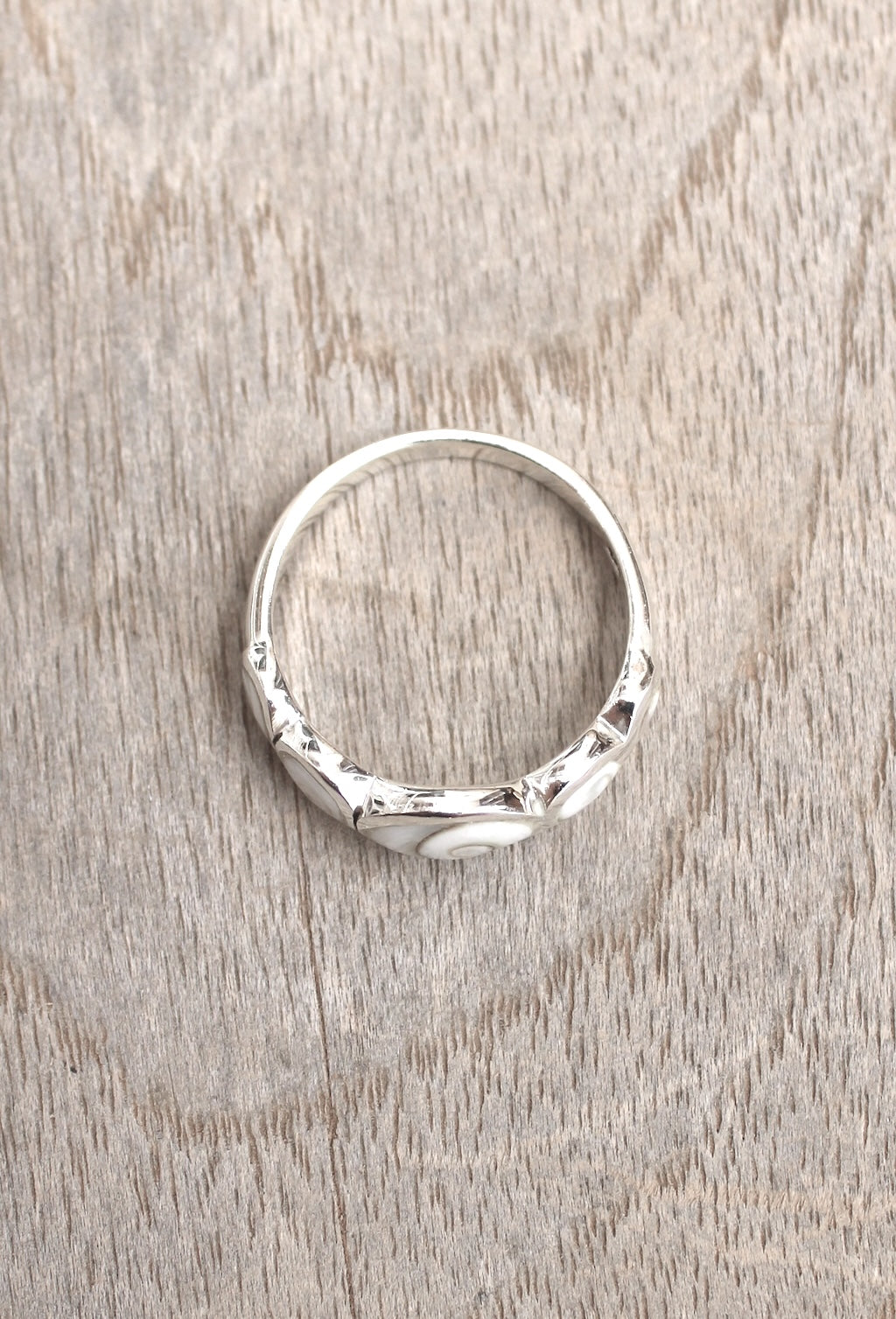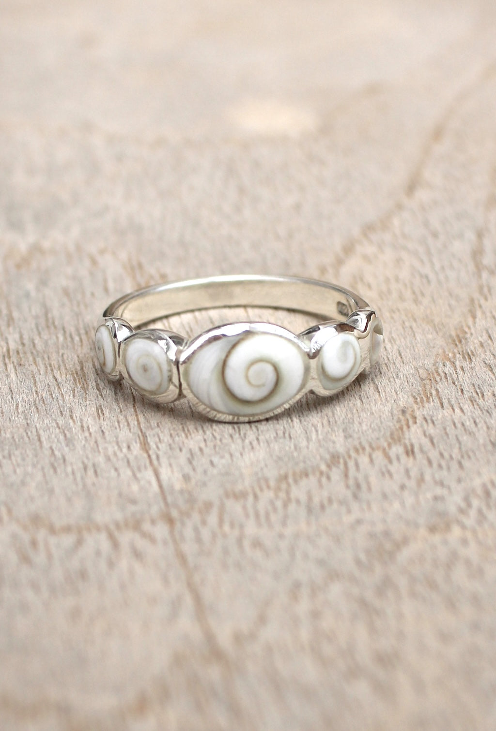Beautifully crafted ring featuring 5 natural Shiva Eye seashells hand set in solid silver.